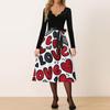Damen Freizeitmode V-Ausschnitt Valentinstag Print Retro Kleid