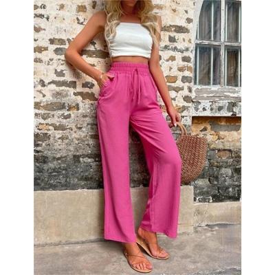 Damen Frühling Sommer Einfarbig Locker Elastischer Bund Lässig Weitbein Hose