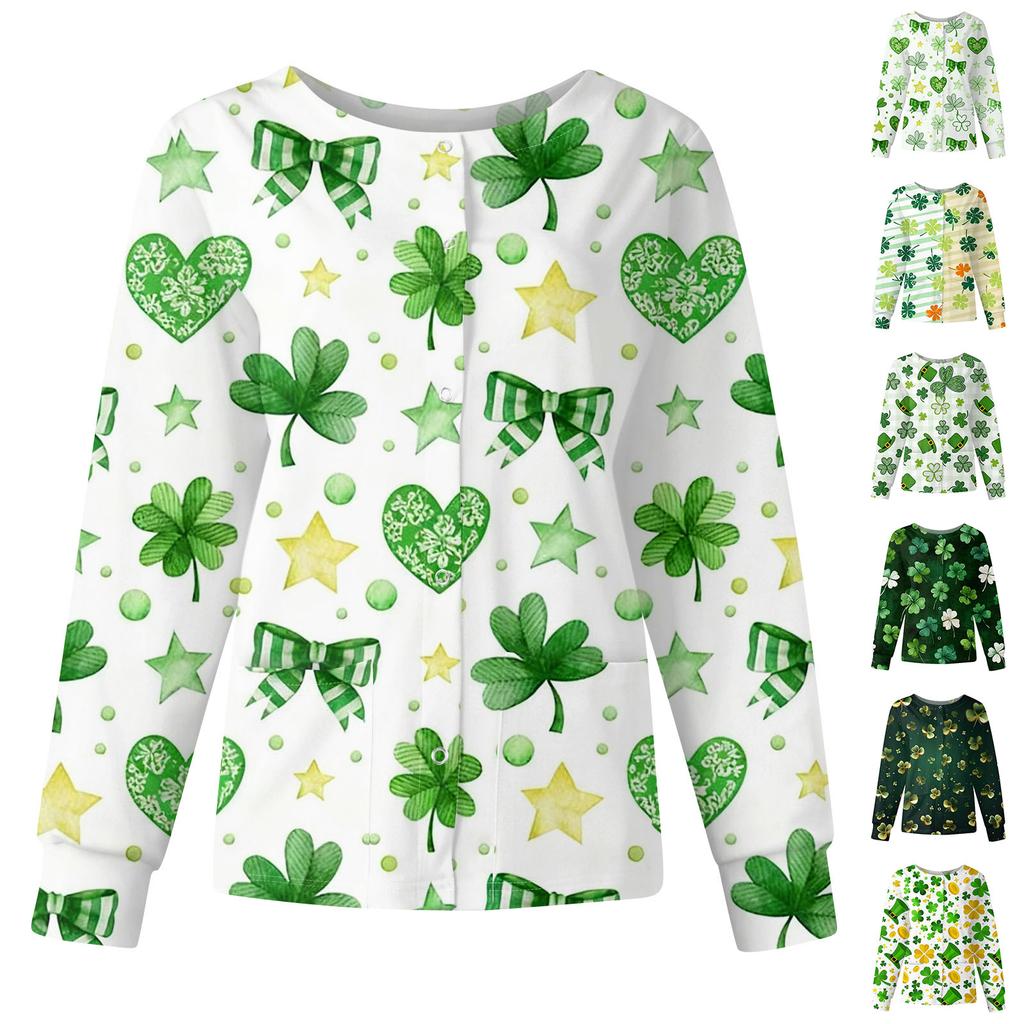 Damen Casual Mode Langarm Stehkragen Einreiher St. Patrick's Day Print Arbeitsjacke Tops