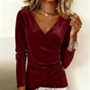 Damen Modisches Einfarbiges V-Ausschnitt Langarm Temperament Slim Fit Und Schlankmachendes Gold Samt Oberteil