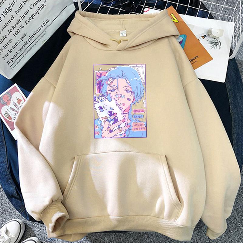 Kawaii Anime SK8 The Infinity Langa Hoodies Harajuku Ästhetik Cartoon Streetwear Herren Damen Langarm Patchwork Sweatshirt