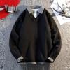 Ya Lu Men's Vintage Faux Two-Piece V-Neck Knit Sweater
