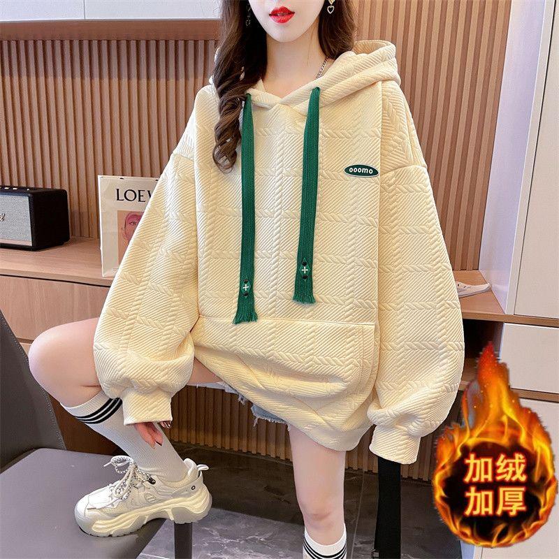 Kapuzensweatshirt für Damen im Herbst Winter Koreanischer Stil Design Nische Plus Samt Verdickt Waffeljacke für Leute Trendig