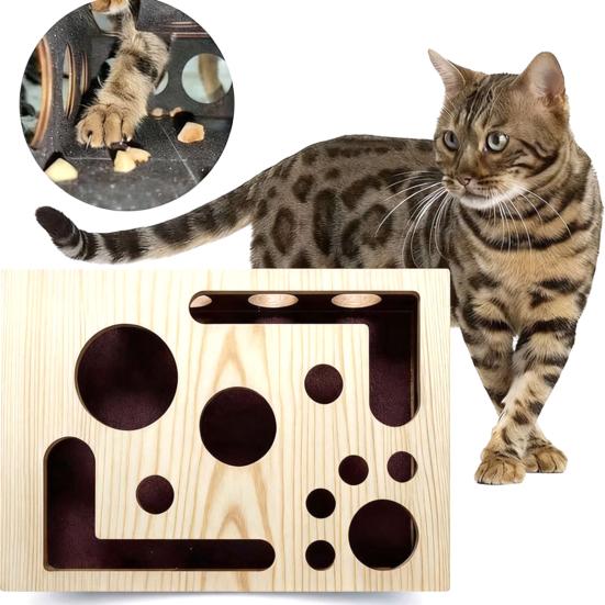 Katzen Nagelfeilenbox Katzenkratz-Puzzle Enrichment-Box mit Glöckchenbällen Interaktiver Katzenkratzbaum Labyrinthbox für Katzen Nagelpflege Selbstbeschäftigung