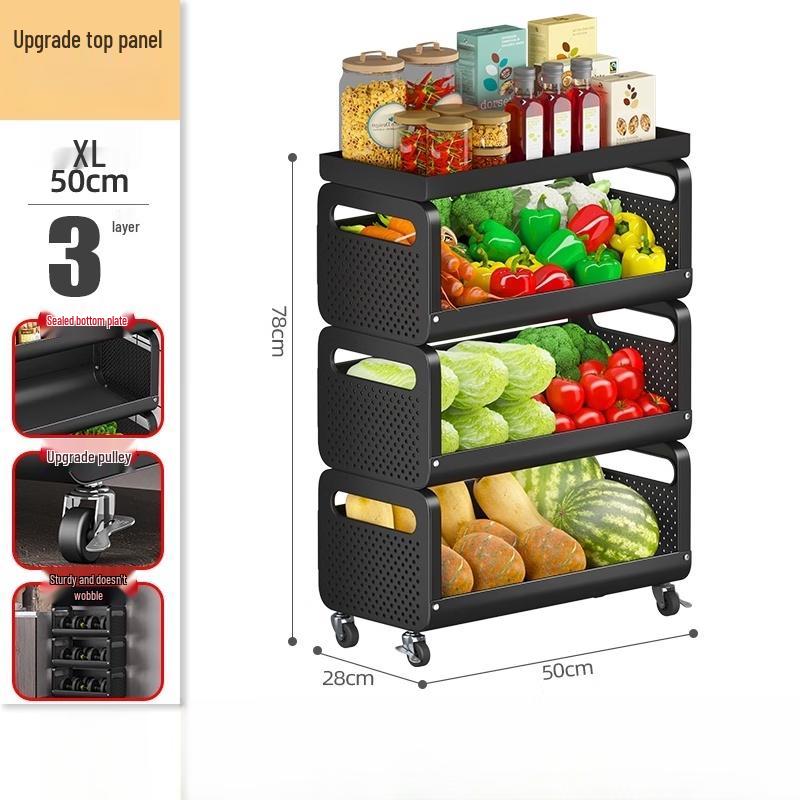 Oversized 3-Tier Movable Kitchen Storage Cart with Top