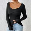 YYFS Damenmode, lässig, Frühling und Herbst, einfarbig, langärmelig, V-Ausschnitt, Blusen und Hemden
