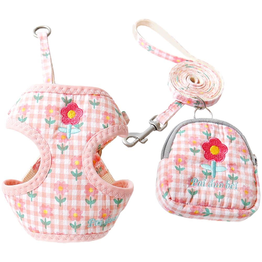 FUPUONE Hundegeschirr mit Tasche und Leine, Blumenmuster, Hundeleine mit Tasche