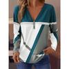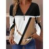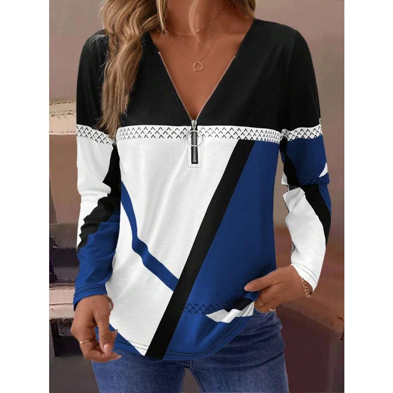 LanaWest Damen Casual Herbst/Winter Langarm-T-Shirt mit halbem Reißverschluss am Ausschnitt, Grafik-T-Shirts mit geometrischem Print, Damenoberteile für den Frühling