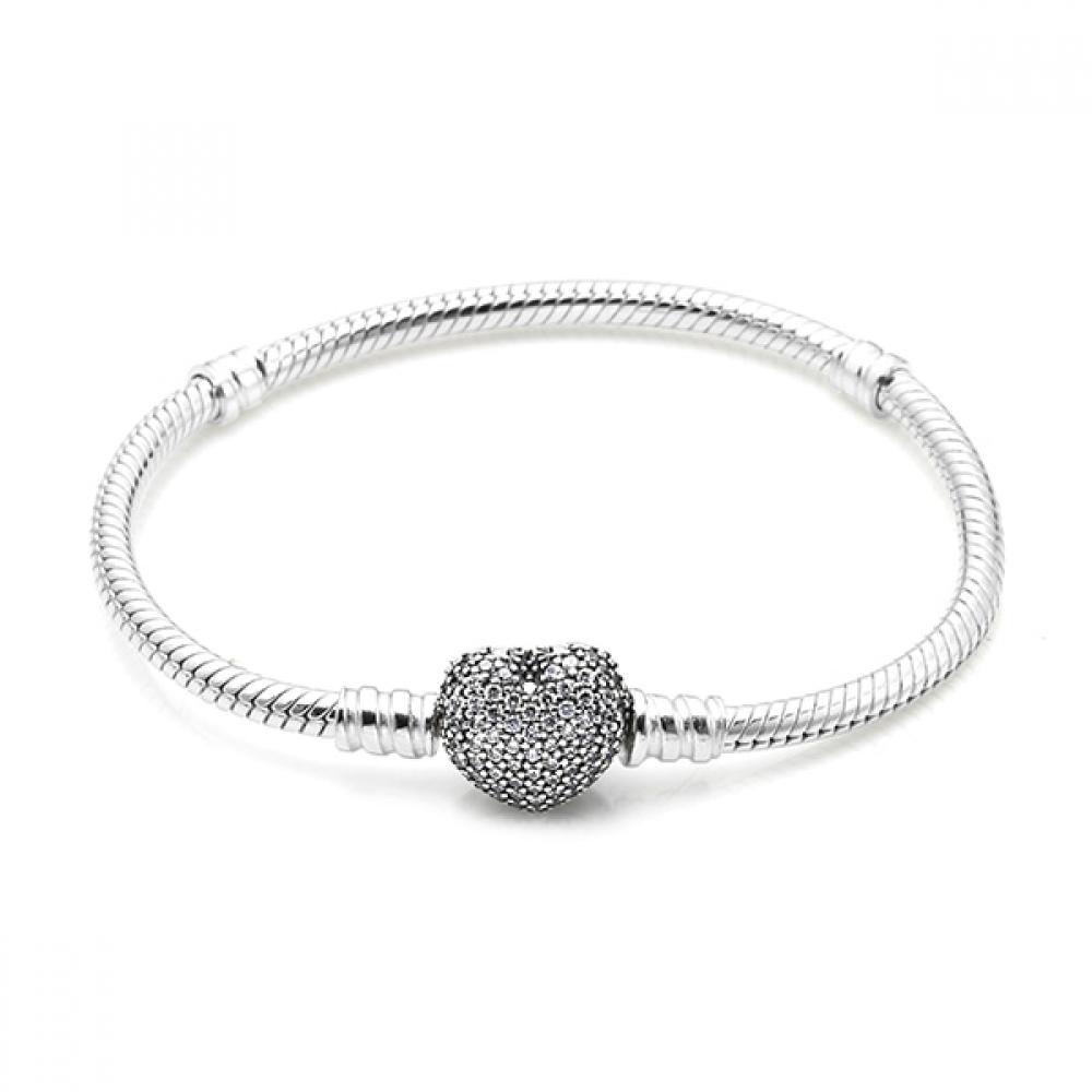 Produktname: Pandora 590727CZ Moments Funkelnder Pavé Herzverschluss Schlangenarmband Silber