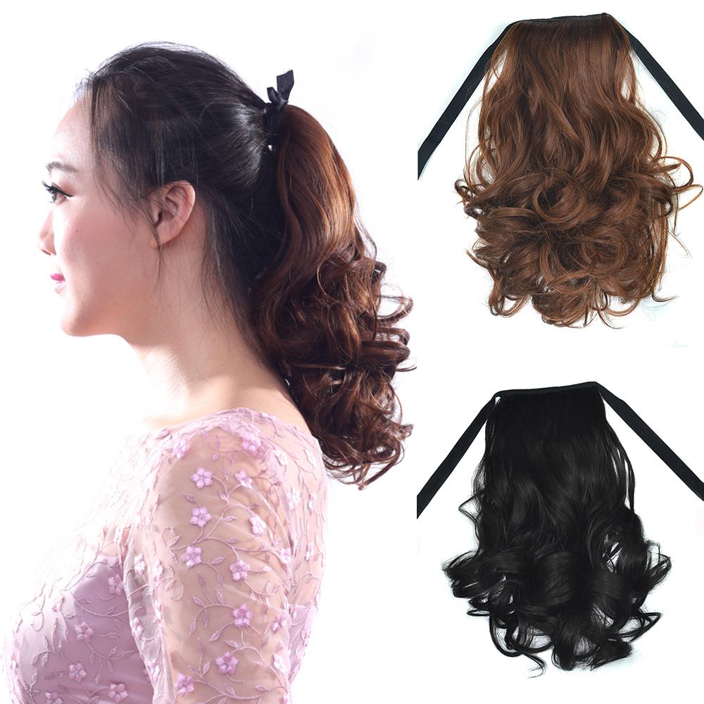 Hort Wellige Pferdeschwänze Kordelzug Pferdeschwanzverlängerung Schwarz Braun Farbe Schneller Stil Synthetisches Haarteil für Frauen Täglicher & Partygebrauch