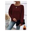 Herbst und Winter Bequemes Lässiges Einfarbiges Langärmeliges Rundhals Patchwork Pullover Top T-Shirt für Damen