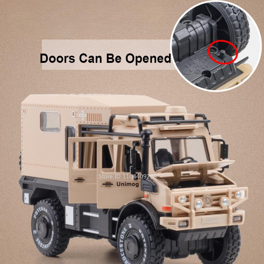 1:28 Scale Unimog U5000 Land Rover Defender Toy Car Model Rubber Tire Alloy Diecast Sound Light Off-Road Vehicle Child Toy