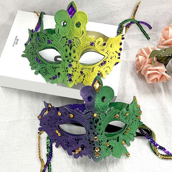Yousheng Mardi Gras Maske mit Strasssteinen Halbgesichts-Karnevalsmaske Pailletten Quaste Maskerade Party Maske für Halloween Kostüm Ball Cosplay Bühnenshow