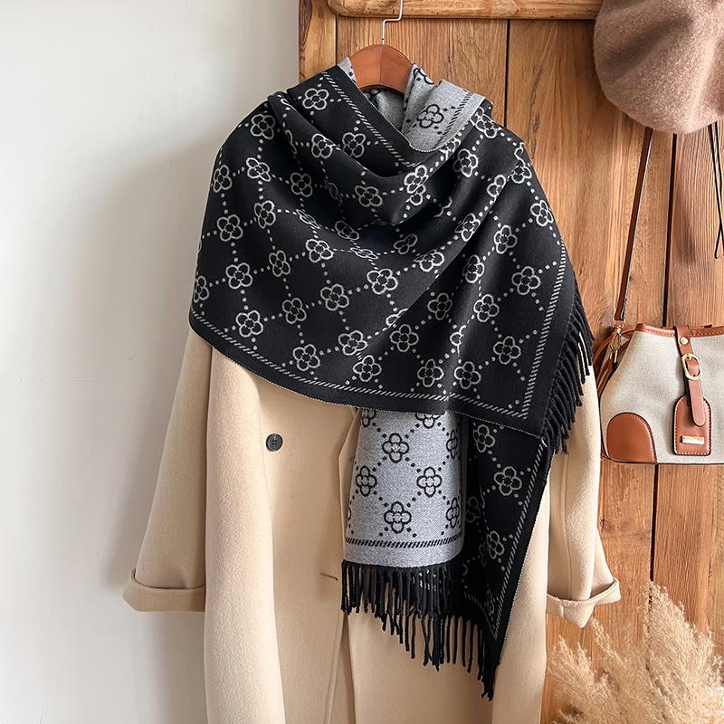 S Jacquard Design Winter Zweiseitiger Schal Kaschmir Weich Warm Langer Fransen Pashmina Schal Kälteschutz Winddichte Decke Schal