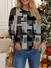 Oberteile für Damen 3D Retro Musterdruck Rundhalsausschnitt Langarm T-Shirt Herbst Casual Slim Pullover Damen Langarmtop