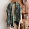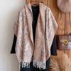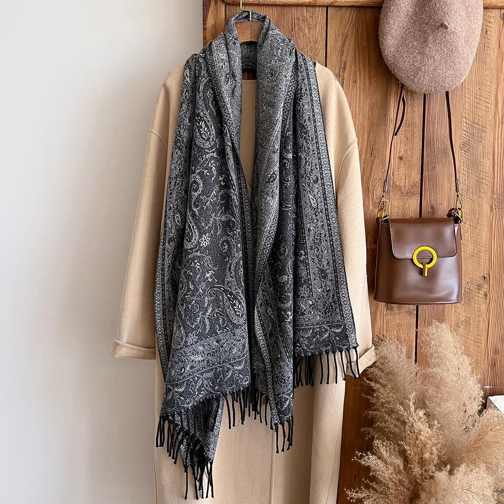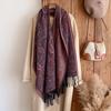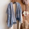 Fashion Winter Cashmere Shawl For Women - Tasseled Vintage Floral Printed Oil Painting Style Pashmina Thick Scarf & Poncho