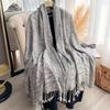 Modischer Damen Winter Warmer Kaschmirschal - Quastenbesetzter Vintage Floral Ölmalerei Gedruckter Pashmina Dicker Schal