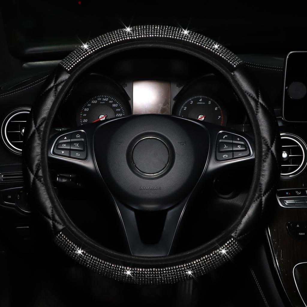 Skin Sense Three-dimensional Artificial Sheepskin Diamond Flash Car without Inner Ring Steering Wheel Cover Fits 14.5-15 Inches
