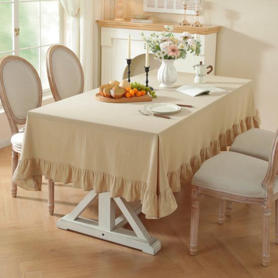 Einfarbige Rüschen-Tischdecke Baumwollmischung Rustikale Tischdecke Rechteckig Quadratisch Tischdecke für Bauernhaus Zuhause Küche Esstisch Terrasse Dekoration