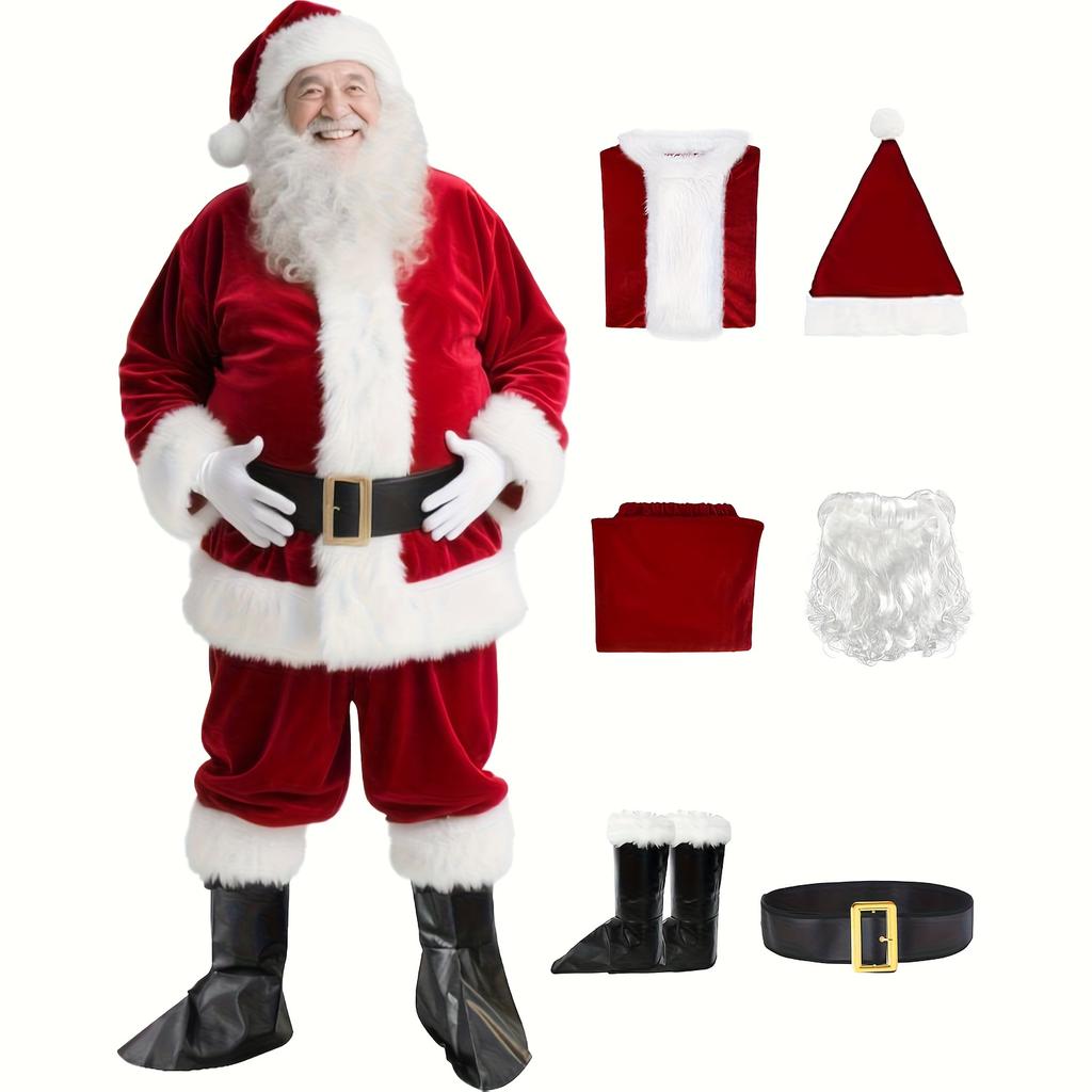 high quality6pcs Santa Claus Costume Set for Men | Adult Professional Deluxe Santa Suit for Christmas Party - Care Instructions: Do not wash.