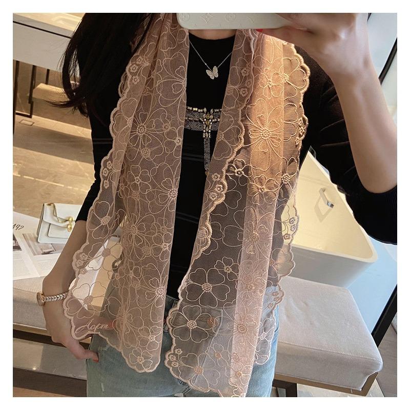 Spring And Summer Exquisite Embroidered Lace Silk Scarf Long French Super Fairy Yarn Belt Korean Version