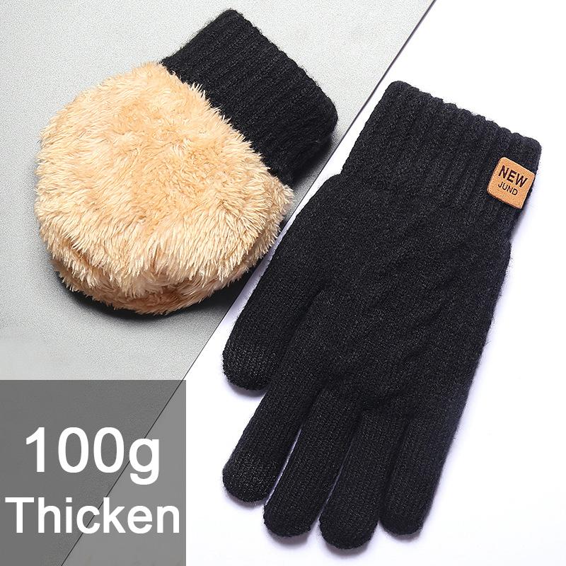 Thick Fleece Lined Fashion Warm Black Cable Knitted Winter Touch Screen Gloves Winter Women Men Coldproof Mittens Gloves Gift