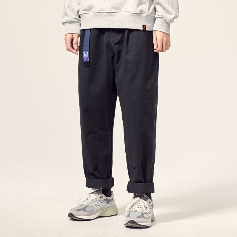 Men's Spring Pocket Embroidered Straight-Leg Cargo Pants with English Letters, Trendy Brand, Student Solid Color Loose Casual Long Pants