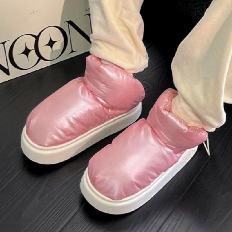 Dicke Plateau Damen Schneestiefel Warm halten Flauschig Wasserdicht Daunen Paar Baumwollschuhe Winter Täglich Plüsch Kurze Stiefeletten