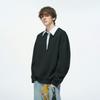 Dream Made Fake Two-Piece College Style Striped Shirt Collar Sweatshirt for Men, Autumn Casual Hoodless Top for Boys