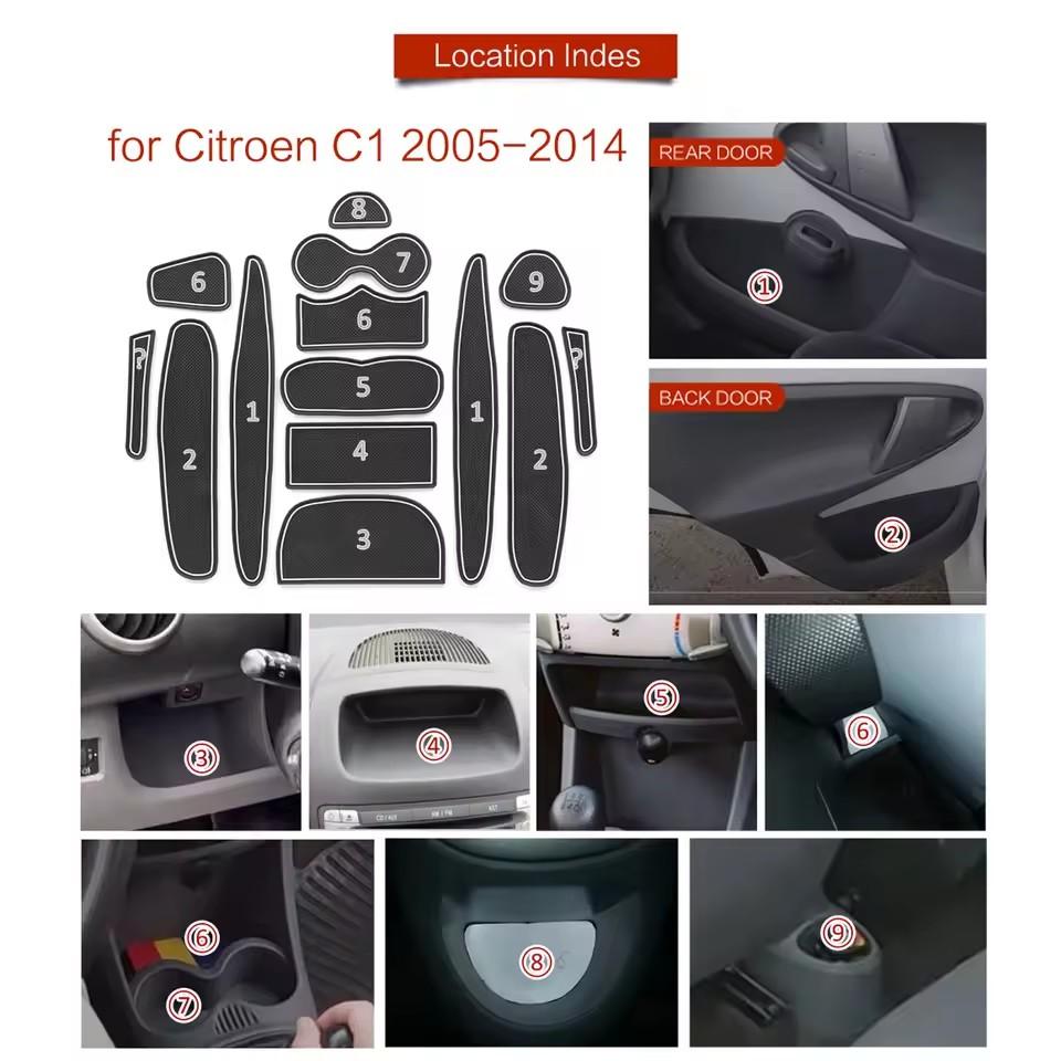 Für Citroen C1 2005 - 2014 Anti-Rutsch Ablagefach-Matte Getränkehalter Türfach Einlage Anti-Rutsch Matten Untersetzer Auto Innenraum Zubehör