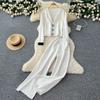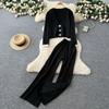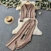 Winter Strickwaren Damen Anzüge Langarm Diamantknöpfe Oberteile+Freizeithosen mit weitem Bein Locker Warme Pullover-Sets