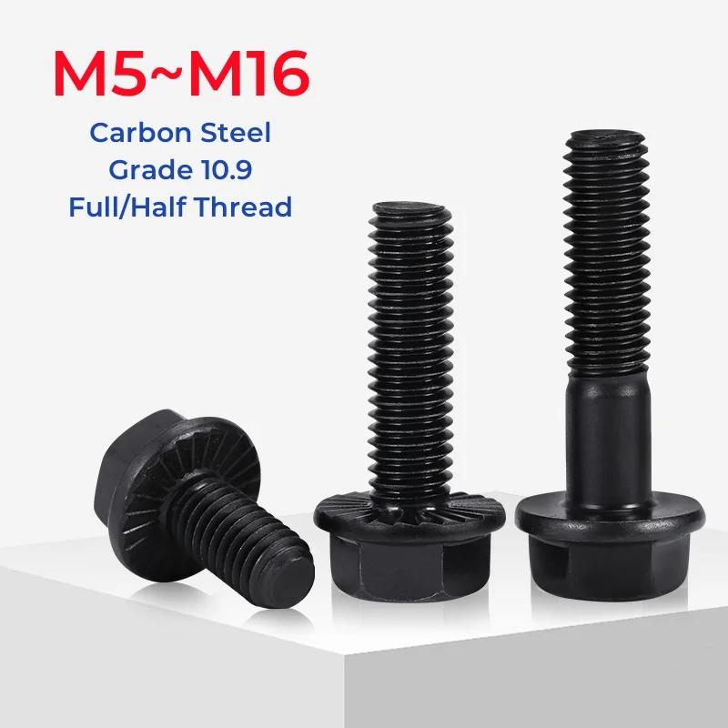 M5 M6 M8 M10 M12 M14 M16 Güte 10.9 Hochfest Schwarz Kohlenstoffstahl Sechskant Sechskopf Flanschschrauben Schrauben
