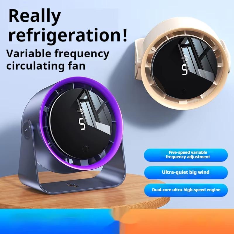 100 Level Bladeless Fan Portable Desk Fans Small Usb Charge Silent Desktop Digital Display High-speed Circulating Cooling Fan