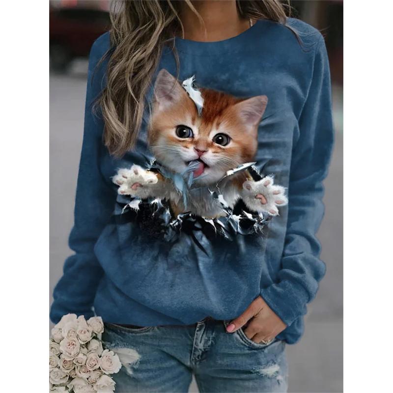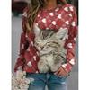 Heißer Verkauf Frühling Lässig Tier Kätzchen Bedruckt Langarm Rundhals T-Shirt
