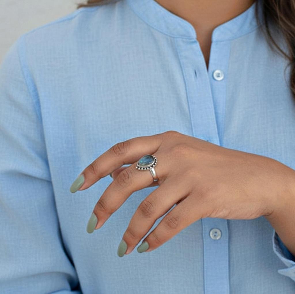 Birnenschliff Rutil 925 Sterling Silber Ring, Handgefertigter Tropfenförmiger Edelstein Statement Ring, Geschenk für Sie