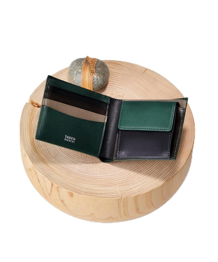 Takeo Kikuchi Antique Leather Bifold Wallet, Men's, Green (524) 07001532