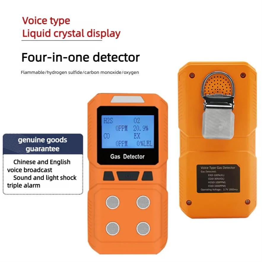 Handheld Portable High Precision 4-in-1 Gas Detector - Combustible & Toxic Hazardous Gas Meter O2 CO H2S Analyzer RechargeableThis 4 gas monitor is the right choice to protect you and your family's health and property.