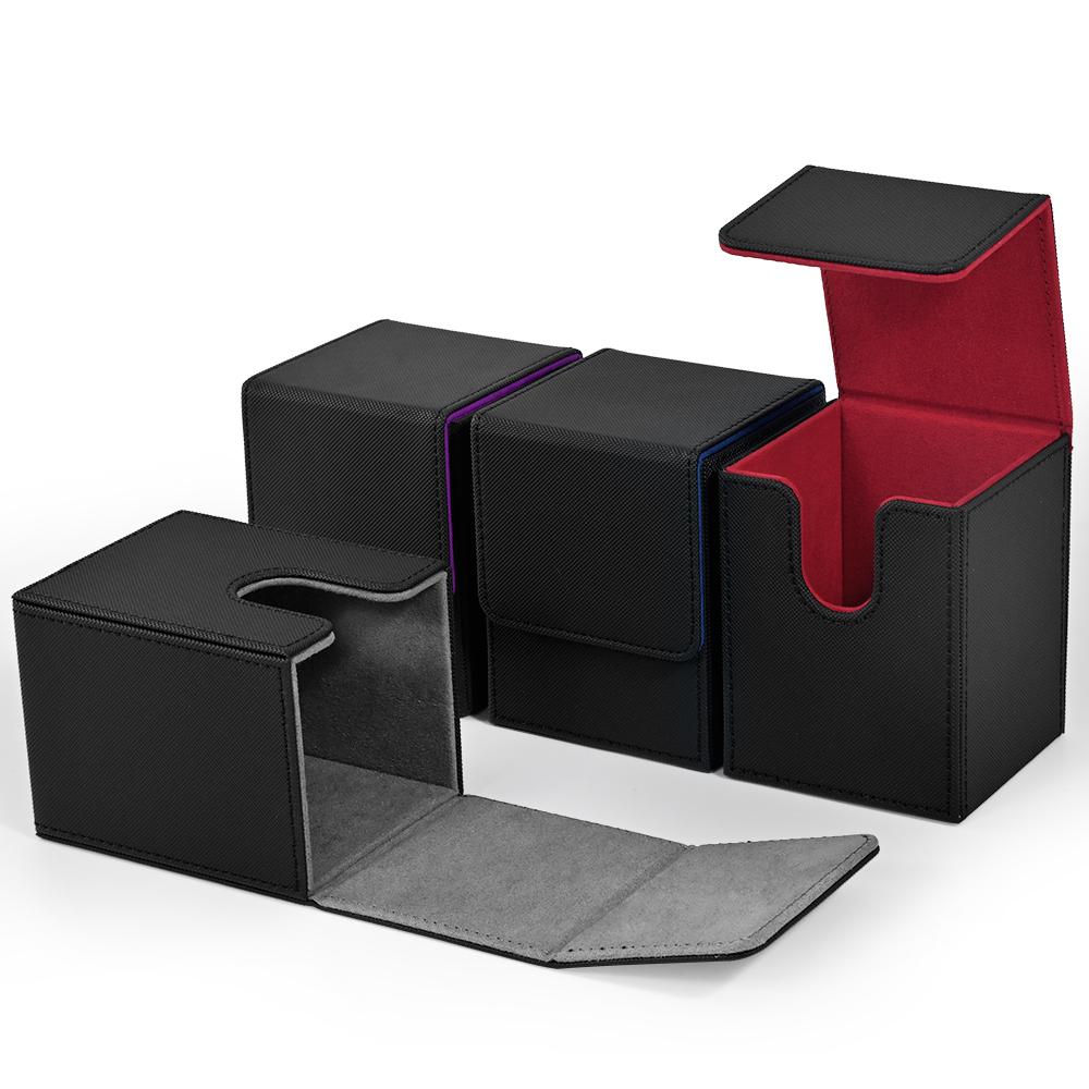 Card Deck Box 4 pack ,Card Storage Box holds 100+ Single Sleeved Cards, PU Leather Magnetic Closure for Magic cards TCG card