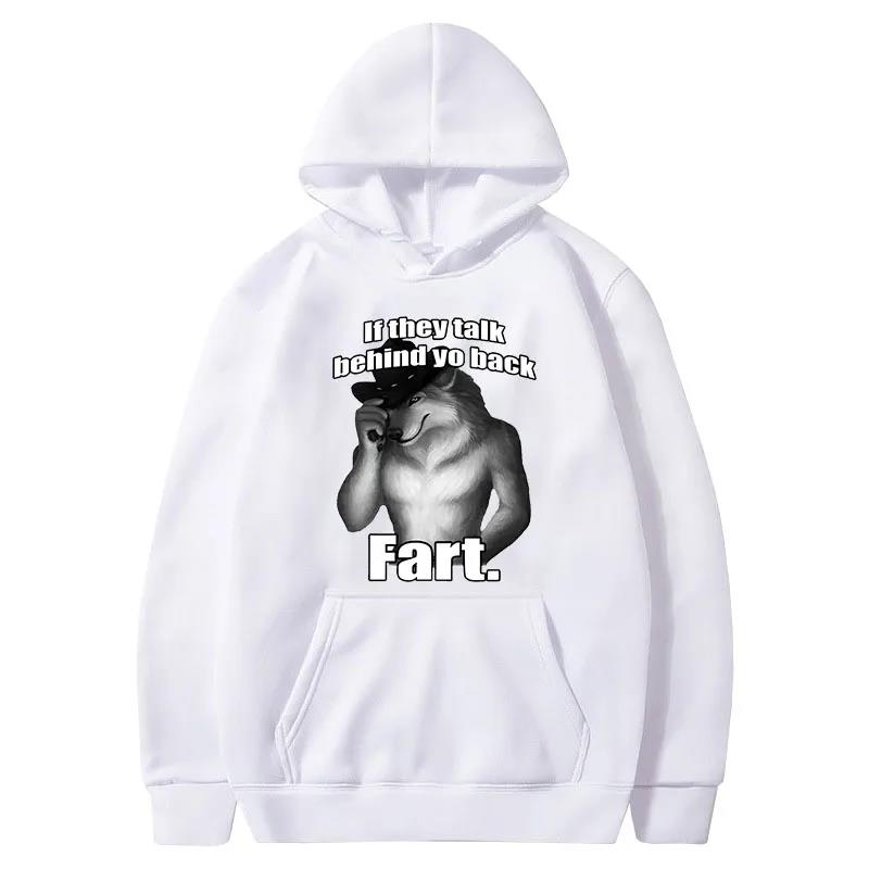 Wenn sie hinter deinem Rücken reden Lustiges Meme Emo Herren Hoodies 2024 Herbst Harajuku Retro Übergroß Furz Wolf Aufdruck Herren Kapuzenpullover