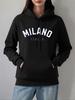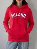Milano Italien Briefdruck Hoodie Damen Bequem Locker Pullover Winter Fleece Warm Sweatshirt Basics Tasche Damen Kleidung