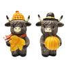 Handgefertigte Hochlandrind-Skulptur Hochlandkuh-Figuren Herbstkürbis Ahorn Halloween-Zwerge Harzstatuen für Thanksgiving