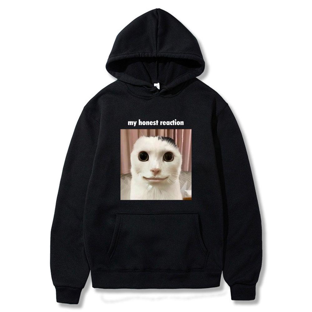 Meine ehrliche Reaktion Lustige Katze Meme Grafik Tops Herren Damen Kleidung Mode Humor Stil Hoodies Lässig Paar Winter Streetwear