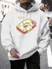 2025 Cartoon Katze Ei Toast Brot Druck Herren Hoodie All-Match Herbst Streetwear Bequemer Lockerer Kapuzenpullover Fleece Tasche Pullover