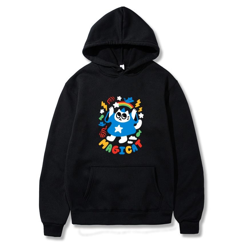 2025 Herbst/Winter Einfarbig Anime Katze Klassischer Hoodie Herren Täglich Lässig Harajuku Hoodie Y2K Streetwear Warmer Hoodie