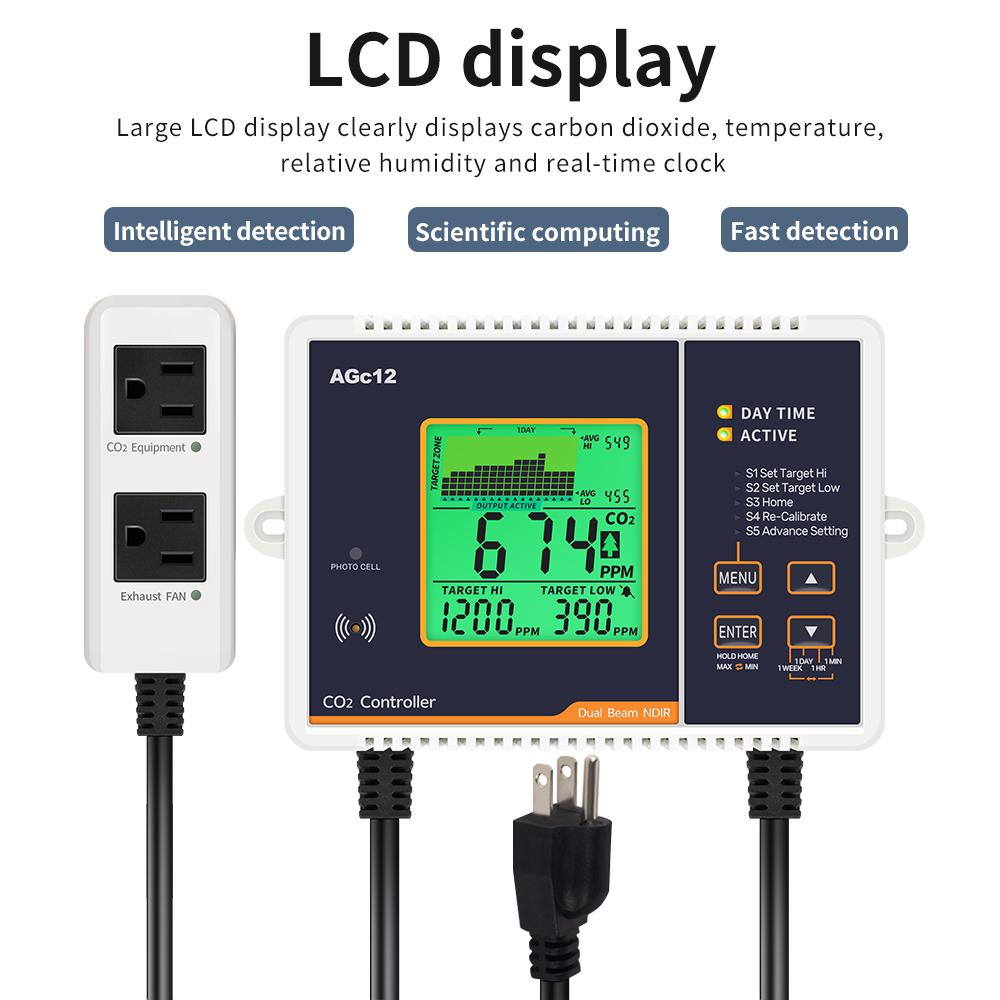 Carbon Dioxide Controller CO2 Controller Dual Channel NDIR CO2 Meter Day Night Carbon Dioxide Pressure Reducer For Greenhouse