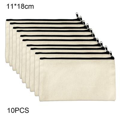 10 Stück Leinwand Blanko Leinwandtasche 8,2x4,7 Zoll Leinwand Make-up Taschen DIY Mehrzweck für Reise Make-up