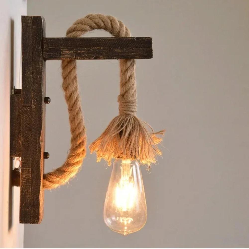 2Pcs Hemp Rope Retro Wood Wall Lamp E27 Edison Bulb for Bar Loft Corridor American Decorative Wall Light Fixture Sconce E27