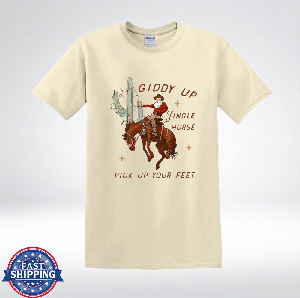 Giddy Up Jingle Horse Cowboy Weihnachtsmann Western Weihnachten Lustiges T-Shirt