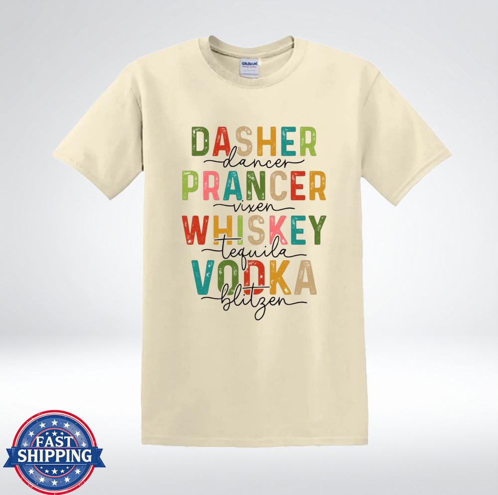 Dasher Prancer Whiskey Wodka Lustiges Weihnachts-T-Shirt
