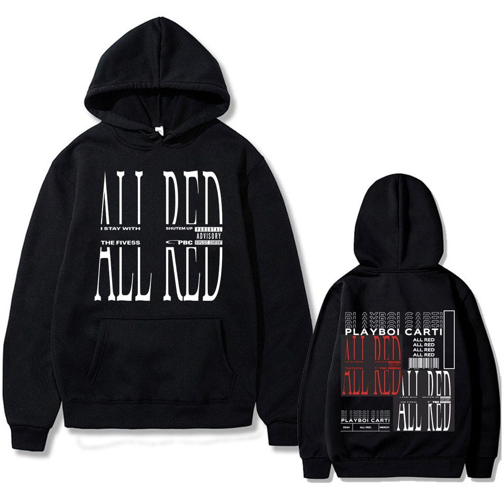 Rapper Playboi Carti Opium ALL RED Album Grafik Hoodie Herren Damen Mode Hip Hop Kapuzenpullover Herren 90er Übergroße Hoodies